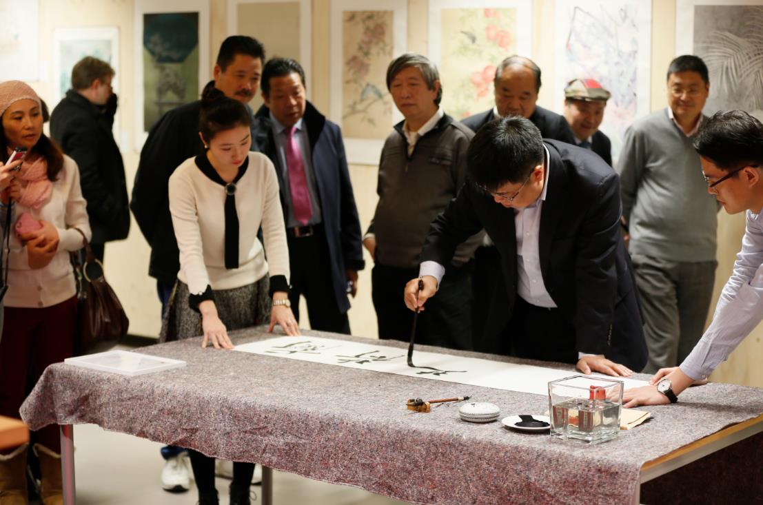 陳日彪公參在致辭中說,“很榮幸也很高興和大家一起成為現代藝術家作品歐洲巡展的第一批觀眾。海牙中國文化中心是中國文化海外傳播與交流的重要窗口,承擔著開展文化活動、教學培訓、思想交流和信息服務這四大職能。也是加深中荷兩國人民互相理解和信任的重要平臺;希望經常能與中、荷兩國藝術家們在海牙中國文化中心相聚,一同品味中國文化的美好,推動中荷文化交流互鑒。”