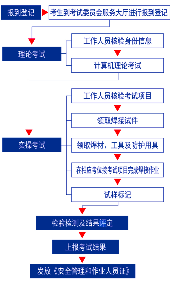 焊工考試委員會設(shè)有:實操考試基地、多功能理論考試教室、焊材庫、試樣庫監(jiān)控室、無損檢測室、理化實驗室等,建筑面積達(dá)700余平方米。