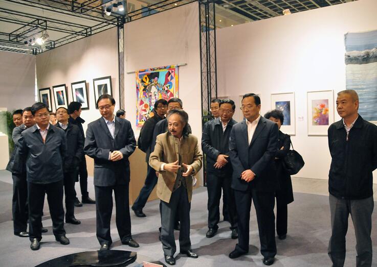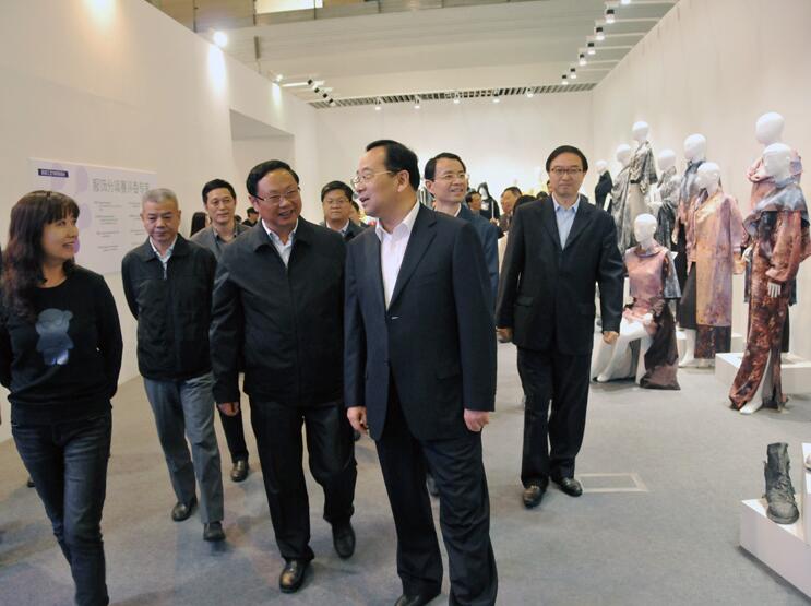 11月3日下午,蘇豪控股集團董事長王正喜,總裁周勇陪同江蘇省副省長張雷參觀“紫金獎”文化創(chuàng)意大展,一行專門參觀了由江蘇省蘇豪控股集團主辦,江蘇愛濤文化產(chǎn)業(yè)公司承辦的民間工藝與時裝設(shè)計專項賽作品展。