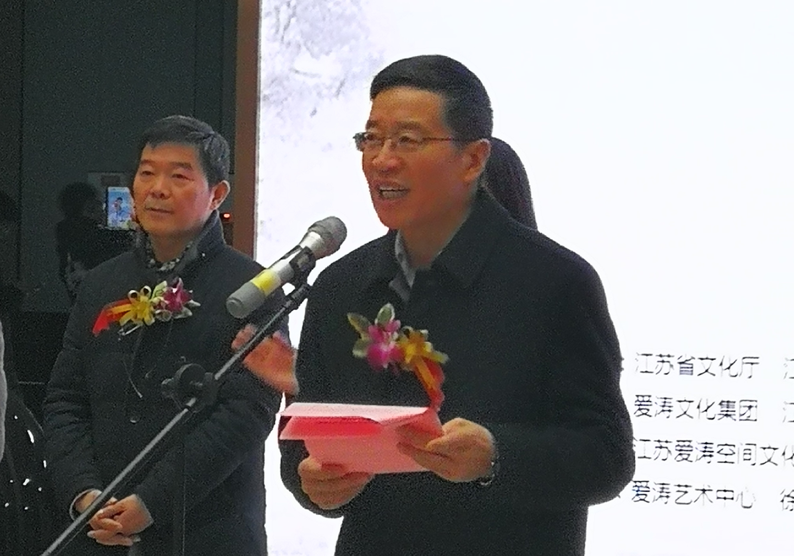 開幕式上,原江蘇省文化廳巡視員、現江蘇藝術基金會副理事長、全國美協中國畫藝委會副主任、國家畫院中國畫院副院長高云、江蘇省蘇豪控股集團黨委委員、副總裁唐進致辭,并為展覽揭幕。江蘇省文化廳江蘇藝術基金辦公室主任濮琦、徐州市文化廣電新聞出版局局長高成富、愛濤文化集團總經理陳云梅、江蘇省美術館副館長金田、徐州市書畫院院長、徐州美術家協會主席高洪嘯、江蘇師范大學美術學院常務副院長惠劍以及省、市書畫家出席開幕儀式。